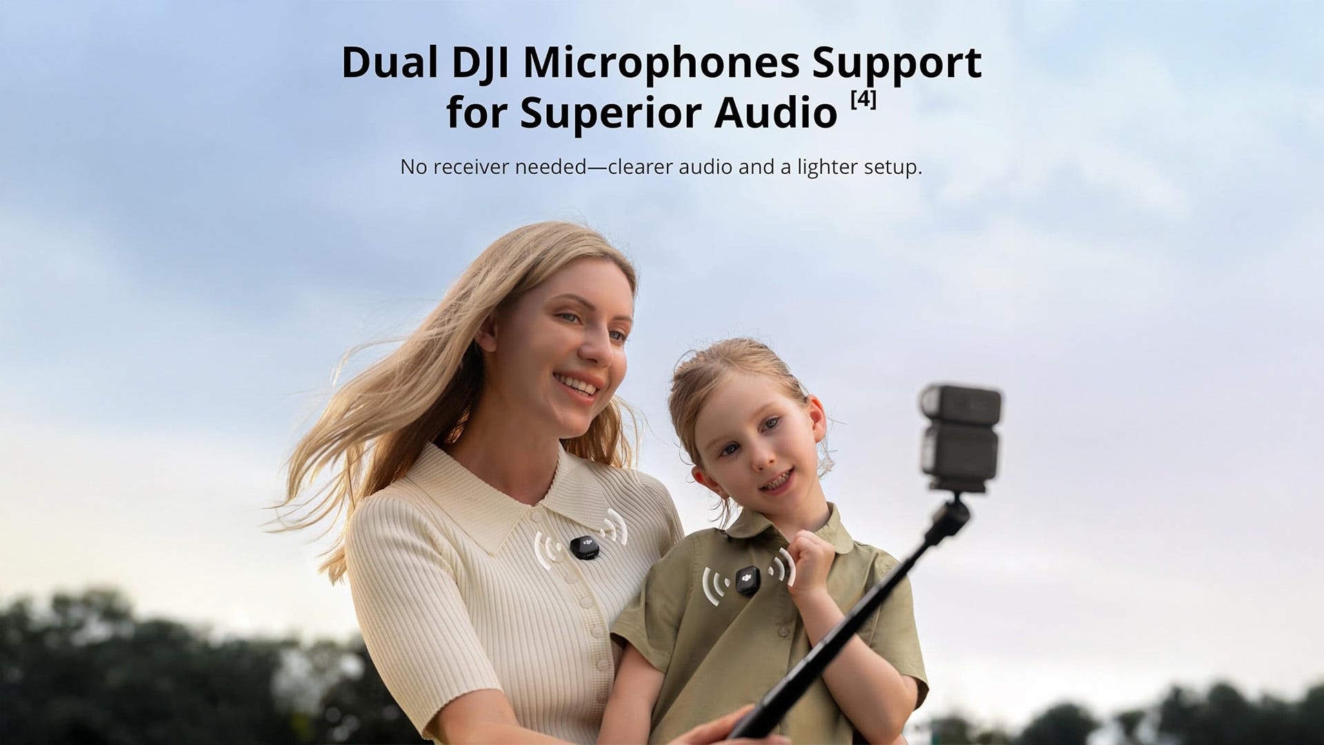 On body microphones are surprisingly clear for a camera this small and wind handling is sensible. However once you pair it with external microphones like the DJI Mic Mini as I did, it really turns into something special.