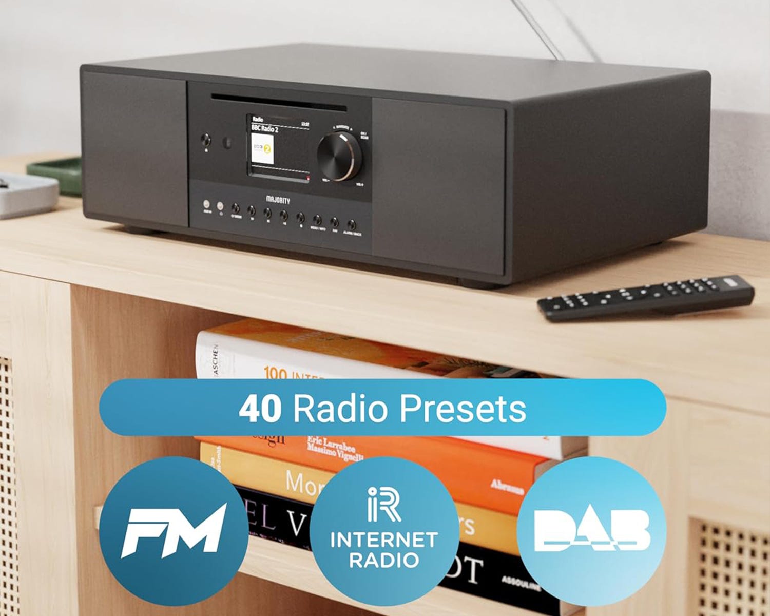The MAJORITY Quadriga is one of the best all-in-one Hi-Fi systems available at its price point. Its combination of warm sound, strong bass, global radio access, CD playback, streaming and wide connectivity makes it stand out as a practical and enjoyable household audio centre.